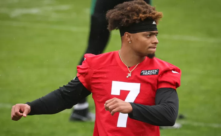 Justin Fields, el mariscal de los New York Jets, Justin Fields, tuvo que retirarse de las prácticas tras sufrir una aparente lesión en la parte inferior de la pierna.