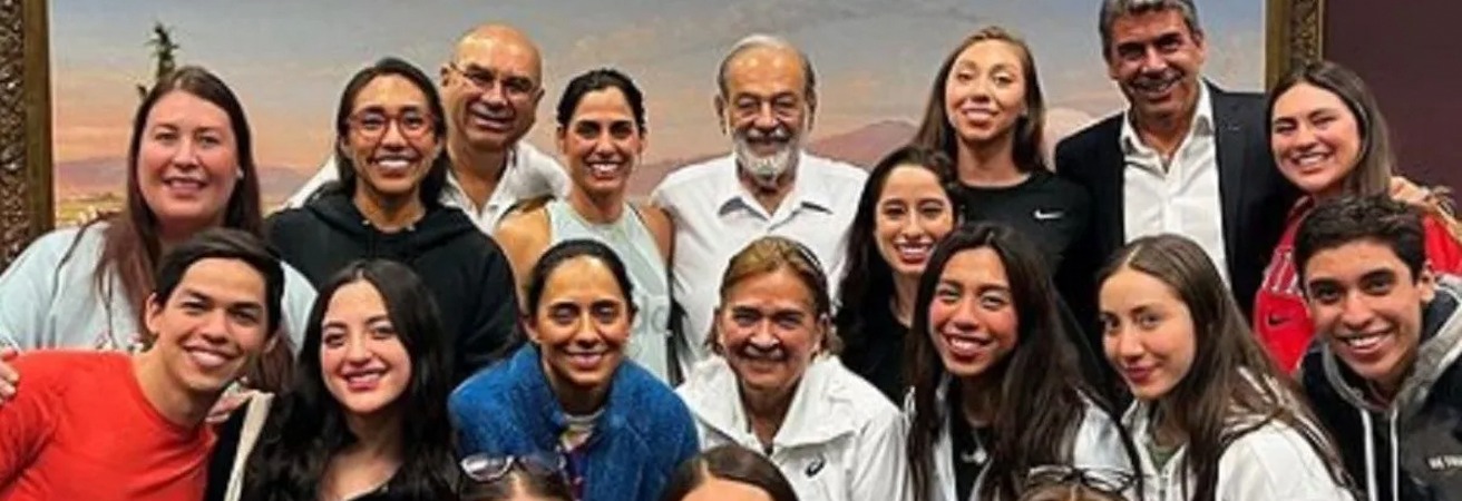 Equipo de nado sincronizado posa con Carlos Slim y Ayub: “Nos pediste una medalla y trajimos cuatro”